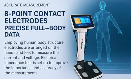 Using 8 strategically placed electrodes on the hands and feet, the system captures segmental impedance data for arms, legs, and trunk. This ensures full-body, real-time readings of fat, muscle, and water distribution with medical-grade precision.